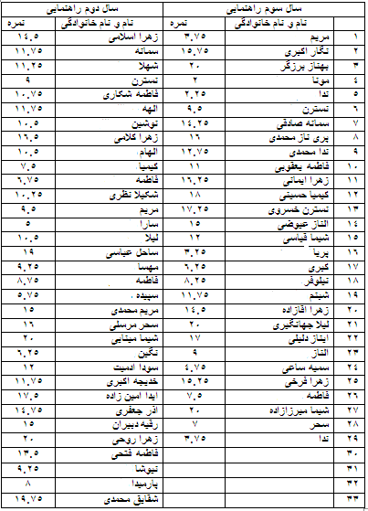قابله ذکر این نمرات گرفته شده در ورقه میباشد.و با نمرات مستمری جمع بسته نشده است.